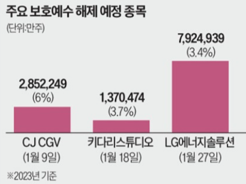 이번 1월 엘지에너지솔루션 3.4%에 해당하는 보호예수 물량이 풀리는 이슈가 있습니다.